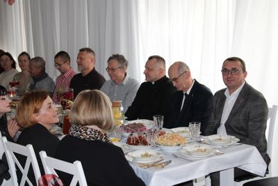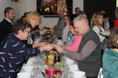 Zgodnie z wigilijną tradycją nastąpiło wspólne dzielenie się opłatkiem. Składając sobie nawzajem życzenia zdrowia, spokoju, radości i pomyślności, uczestnicy oraz goście stworzyli atmosferę wzajemnej życzliwości i bliskości.